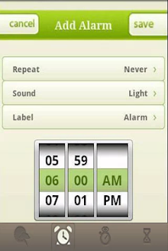 * Shake to snooze. For devices with accelerometer, just shake the phone when the alarm goes off and the alarm will snooze for 5 minutes.