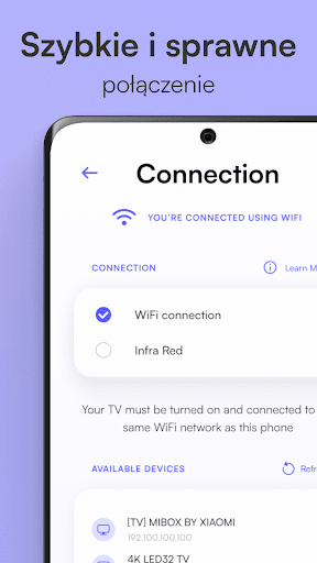 Aplikacja Pilota Xiaomi Mibox TV jest przeznaczona do sterowania wszystkimi urządzeniami Mi Box z wbudowanymi opcjami zdalnego sterowania. Podłącz swój telefon i TV. Po udanym połączeniu użytkownik zostanie przekierowany do wybranego ekranu.