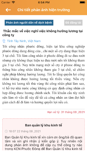 Aplikacja odzwierciedla scenę prowincji Tay Ninh, która zapewnia funkcję wspierania ludzi, firm i turystów w celu kompleksowego odzwierciedlenia działań w prowincji, gdy zdają sobie sprawę z niedociągnięć, wysyłając opinie na temat agencji regulacyjnej, które towarzyszą zdjęcia lub klipy wideo.W ten sposób odpowiednie jednostki poradzą sobie i odpowiedzą na opinie ludzi