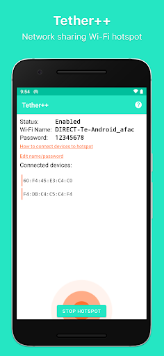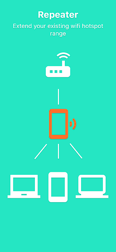 Create WiFi direct hotspot with no root required. Extend the coverage of your existing WiFi hotspot with a poor WiFi signal by using your mobile phone as a WiFi repeater. Remove speed limits or fees for tethering from your mobile carrier.