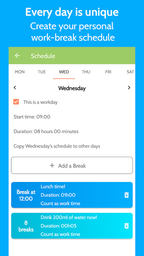 Break App to łatwe i proste rozwiązanie do zaplanowania przerw z spersonalizowanymi przypomnieniem i przypomnieć, kiedy odpocznij w ciągu dnia roboczego. Trzymaj swoje ciało i umysł zdrowego, poświęcając czas na wstanie, ruch, rozciąganie, napić się lub jeść.