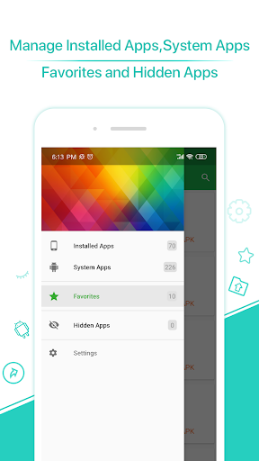 A modern, easy and customizable APK extractor & app manager for Android that allows you to extract any installed and system app, mark them as favorite, share .apk files easily and much more.