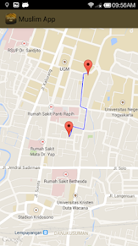 User can view the nearby mosques with distances and view the route on Google maps.