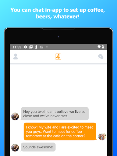 Party of 4 is for couples only. It's an app to find friends based on your location and the phase of life you're in (for example: if you have kids, no kids, etc.). It's an app for finding platonic friendship only (strictly enforced). Make a profile today and start swiping!