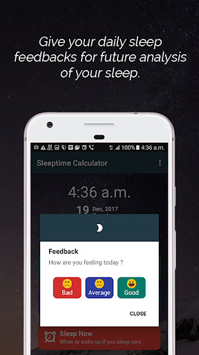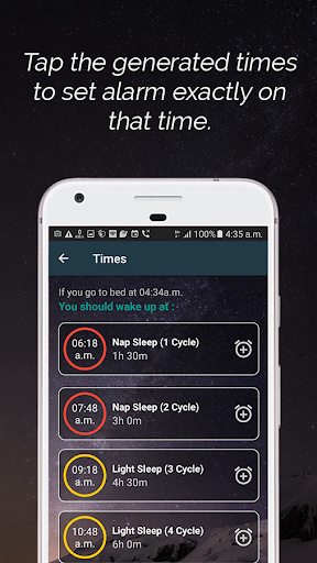 Sleep is a very important thing in our life. A good sleep can make your day much beautiful and gives you a joyful mind to start the day. For making your sleep better, this app generates a set of wake up/ sleep time according to your sleep cycle duration. So if you wake up or sleep within these duration, your sleep will be sound and your day will be better. This app also contains a nice set of Sleep Meditation Music for making your sleep much better. These meditation sounds also help you to fall asleep faster. The main features of this app are described below