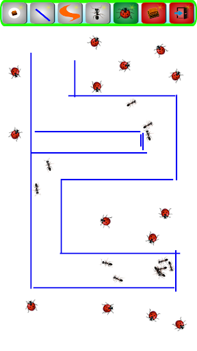 Create a maze and fill it with ladybugs and ants. As we don't like to smash bugs, you just can enjoy them as they move through the maze.