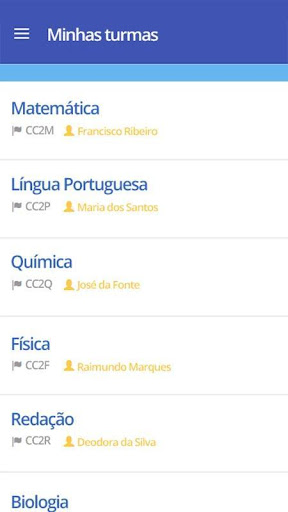 - Quadro de horários (matéria, professor, horário e turma correspondente)