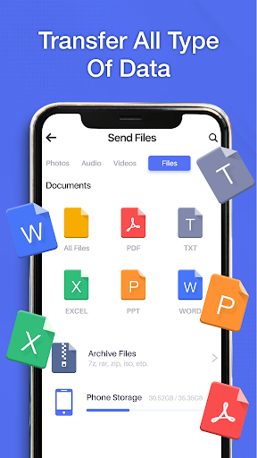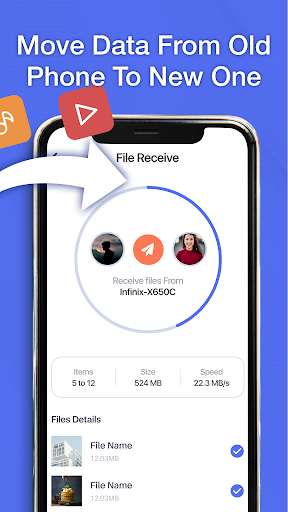 Phone Clone: Quick File Share is a smart transfer app that allows to copy my data from an old device and transfer it to other devices using WIFI connection