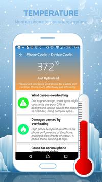 Phone Cooler - Device Cooler is a temperature monitoring and controlling app that reduce your CPU usage and cool down your phone. Mobile Cooling overcomes the common heating problem of android phones, lower down phone CPU temperature and cooling device your overheating phone. Phone Cooler - Device Cooler helps to detect temperature and control the extra usage of Apps that produces heat and makes your phone slow. Cooler master close the heavy resources to reduce CPU usage and lower down temperature. Enhance overall performance of your device, cooling android cool down phone and keep your device performance optimum with cooler master application to cool down phone.