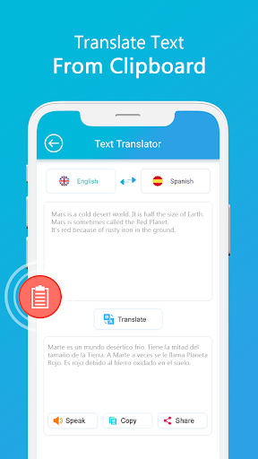 Best translator app to for all language translation to translate your words. Language free translator from camera, photo, text, document and voice translator. Take a picture from any document, objects restaurant menu, magazine or photo and translate it into any language of the world. The camera that translates physical or digital documents is a real translator. This app will help you to translate your text in your desired language. You can easily share your translated text with your friends and family on any social media.