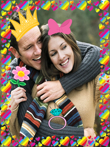 * Apply to the photo the funny and varied stickers it contains: castles, crowns, dresses, ties, pets, stars, hearts and many more.