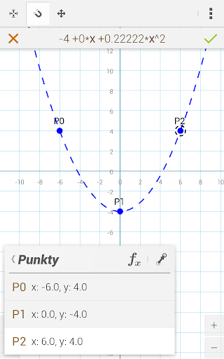 •• Użytkownik podając wybrane punkty na ekranie otrzymuje wykres funkcji wraz ze wzorem!