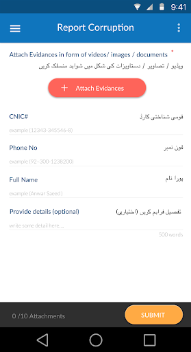 Każda osoba może zgłaszać problemy z korupcją wymagającą pomocy urzędników państwowych. Jeśli ktoś chce ukryć swoją tożsamość i sprawozdanie korupcji, może korzystać z tej aplikacji i zgłaszać korupcję i skorumpować praktyki. Ta aplikacja zamierza wzmocnić obywateli prowincji Pendżabu, Pakistanu do wykonywania prawa do monitorowania projektów i usług rządowych, używając swoich telefonów komórkowych.