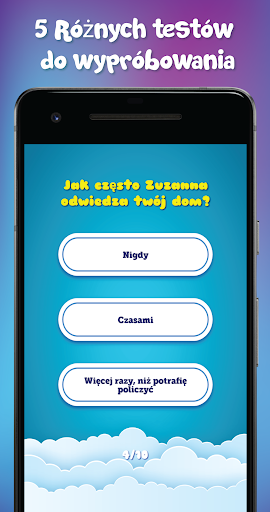 Teraz możesz przetestować swoją przyjaźń z rodziną i przyjaciółmi, biorąc szybki i łatwy quiz. Baw się dobrze z przyjaciółmi, zapisz wszystkie wyniki testu i zobacz, kto jest twoim najlepszym przyjacielem. Możesz dzielić się wynikami ze wszystkimi znajomymi, aby mogli zobaczyć, jak zdobyli punkty, a kiedy wypróbują aplikację, będą mogli również udostępnić Ci swoje wyniki!