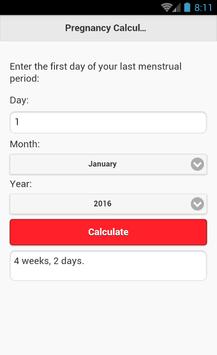 Pregnancy calculator week by week. Easy to use and very simple program. No internet connection needed.