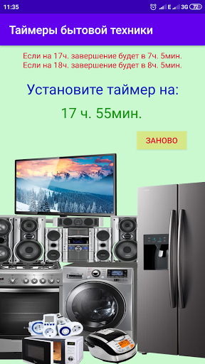 Aplikacja ma na celu obliczenie czasu potrzebnego przy instalacji odroczonego rozpoczęcia urządzeń gospodarstwa domowego. Przypuśćmy, że potrzebujesz pralki, aby zakończyć pranie o godzinie 7 rano, na ten wieczór musisz policzyć czas i ustawić timer opóźnienia startu, dzięki czemu pralka uruchamia program myjący, biorąc pod uwagę czas pracy i ukończył operację do godziny 7 rano.