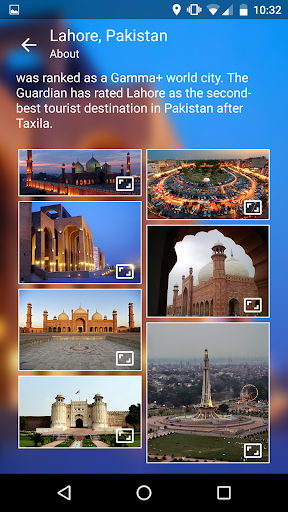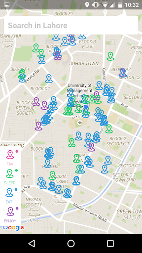 A good guide to new comers and tourists in the city of Lahore. It lets you extract information of Lahore enjoyment places, sleeping places and eating places as well as gives you updated weather forecast of 7 days and a bit of history of Lahore city. You can select your favorite places in this app also. To access this information you will need your location and internet to be turned on in your mobile phone.