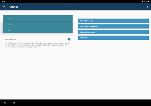 jedyna oficjalna aplikacja do przygotowywania testów do samochodów ciężarowych i autobusowychTestowanie materiałów do nauki dla kategorii C (ciężarówki) i D (autobusy), a także śledzić swoje postępy podczas nauki.