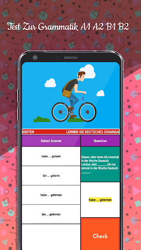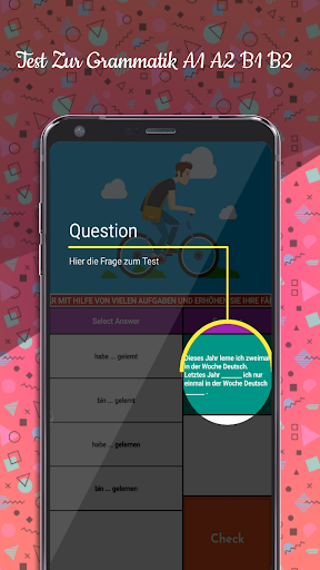 Test Zur Grammatik A1 A2 B1 B2 to bezpłatna aplikacja dla uczniów języka niemieckiego A2, którzy chcą zdać egzaminy TELC A2 lub Goethe A2.