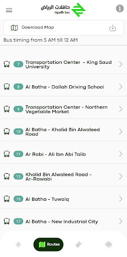 Trasy: szczegółowo eksploruj każdą trasę autobusową, przeglądanie powiązanych stacji autobusów, ruch autobusów na żywo i dostęp do mapy autobusu Riyadh.