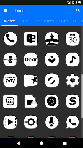 3. Wybierz ikonę, to pokaże pakiety ikon, wybierz W & amp;B i wybierz swoją ulubioną ikonę, wbudowana funkcja wyszukiwania w aplikacji.