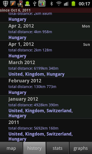 Define important locations by long pressing "locations" in the browser. The more information you add, the more interesting the statistics will become.