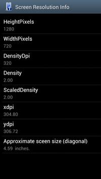Get Screen Resolution Information for your device. It includes density dpi,pixel height, pixel width, density, scaled density, screen size ...etc It's a useful app for developers and the tech savvy.