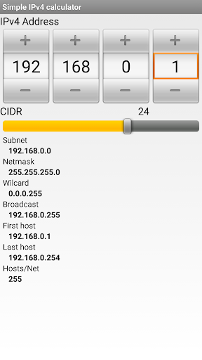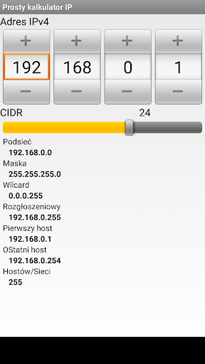 Prosty kalkulator adresów ipv4. Wylicza podsieć, maskę sieciową, wildcard, adres rozgłoszeniowy, liczbę hostów, CIDR
