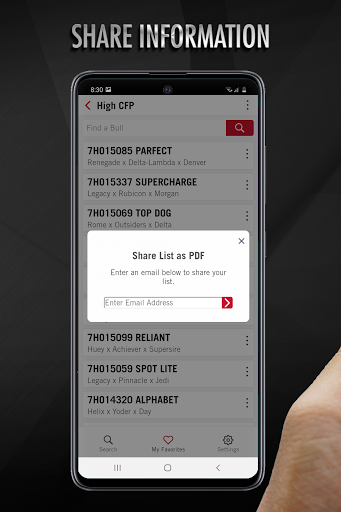 Zasilane przez Select Sires Bull Search, możesz uzyskać dostęp do naszej elitarnej oferty bura z dłoni, w dowolnym miejscu, w dowolnym miejscu, nawet bez połączenia internetowego.Dzięki aplikacji mobilnej Select Sires nigdy nie było łatwiejsze znaleźć, utworzyć i udostępnić listę berów, które spełniają twoje cele hodowlane.