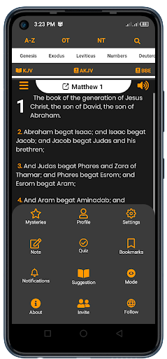 This feature anables you to view list of scriptures under various mysteries of The Kingdom, over 28 Mysteries available with list of scriptures.