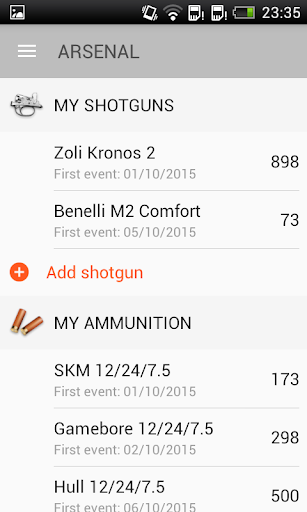 - statistics for all shotguns and cartridges you use