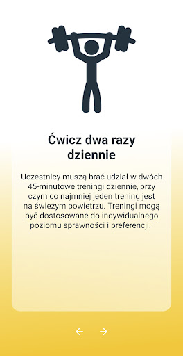 Codzienne śledzenie ćwiczeń: Rejestruj swoje dwa 45-minutowe treningi dziennie, przy czym co najmniej jeden trening jest na świeżym powietrzu. Dostosuj swoje treningi do swojego poziomu sprawności i preferencji.