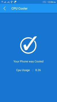 Analyzes CPU usage dynamically and cleans running apps using CPU Cooler. Starts a cooling progress and cool down the android device as fast as possible.