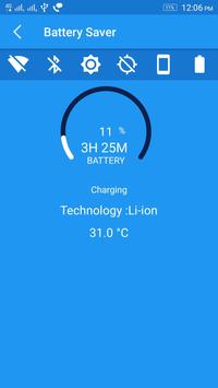 Battery Saver to view the charging status & to control system settings like WiFi, bluetooth, brightness, location, display time, battery usage.