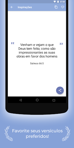 - Funcionamento offline, portanto mesmo sem conexão com a internet poderá visualizar seus salmos e frases da biblia