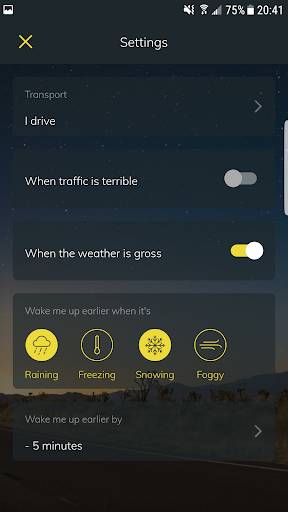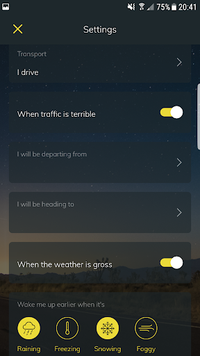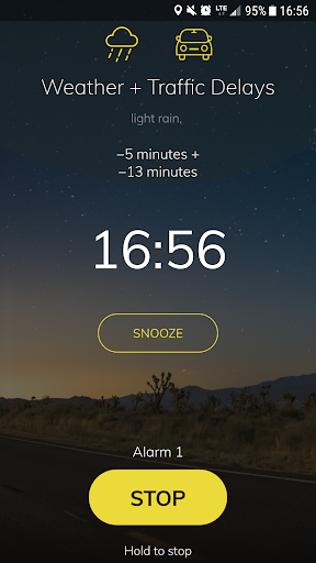 As for traffic? You don’t even need to do anything! We read real-time traffic reports to automatically adjust your alarm. If traffic is 45 minutes slower than usual, your alarm will go off 45 minutes earlier.