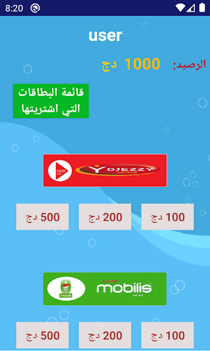 تطبيق لشراء بطاقات تعبئة رصيد المكالمة و الأنترنت أون لاين في الجزائر.