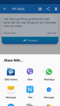 ★ We offer sharing feature using which you can share any of your SMS message over Email, Whatsapp, Viber, Google , Facebook, Twitter or any other social or communication medium directly which allows you to share.