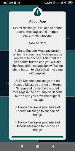 Tajne wiadomości to aplikacja, aby udostępnić tajne zaszyfrowane wiadomości i obrazy potajemnie z każdym. Ta aplikacja jest bardzo wyjątkowa i tworzona w celu wysłania tajemnicy i zakodowanych wiadomości do każdego, kto nikt inny nie może zrozumieć, nawet jeśli go przeczytali. Jedynym sposobem na zrozumienie zaszyfrowanej wiadomości jest dekodowanie go za pomocą aplikacji tajnych wiadomości.