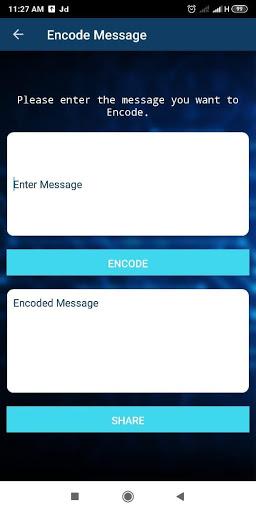 1. Przejdź do przycisku komunikatu Ekkode na ekranie głównym i wpisz wiadomość, którą chcesz kodować. Po tym, że dotknij przycisku ENCODE, a zobaczysz zakodowany komunikat poniżej. Dotknij przycisku Udostępnij, aby udostępnić ten komunikat z każdym.