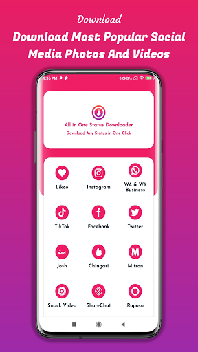 dzięki pomocy wszystkich w jednej golarce można zapisać zdjęcia i filmy z Instagram, bębnów Instagram, Facebook, Whatsapp, Twitter, Like , Josh, Chingari, Roposo, Snack Video, ShareChat & Mitron