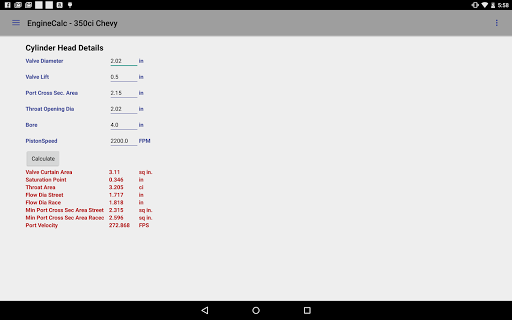 Prosty kalkulator silnika, który pozwala użytkownikowi grać z różnymi elementami, takimi jak otwór, uderzenie, długość pręta podczas projektowania silnika. Informacje można wtedy zostać zapisane w pliku i drukowane.