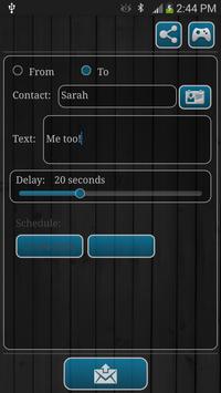 Fake SMS (Text Message) prank allows you to fake entire conversations with people in your contacts list or new names/phone numbers. This application will add text messages to your sms inbox or outbox. You can write anything you want, you will be the author so it is up to your imagination. Pick a contact, set the delay, date or time and send...