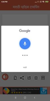 For this app you can search as Marathi Voice Typing in All Language, Marathi Speech to Text, Marathi Smart Voice Typing, Marathi Speech Note, Marathi Talk to Text, Marathi Write SMS By Voice, Marathi Search by Voice, Marathi Speak to Easy Write, Marathi Voice Text Messages, Voice Translator in All Language.