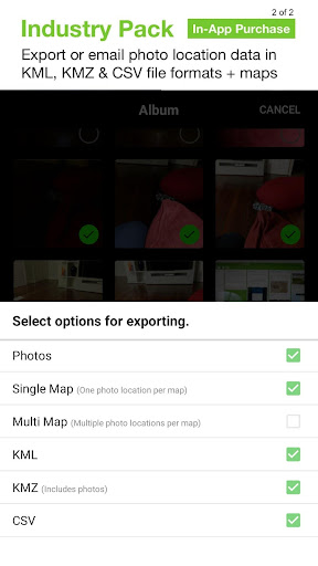 Eksportuj lub wyślij e -mail do wielu zdjęć i informacji o zdjęciach w formatach KML, KMZ lub CSV. Dołącz mapy lokalizacji zdjęć wraz ze zdjęciami podczas eksportowania lub e -maila. Zdjęcia eksportu/e -maila indywidualnie lub jako plik zip.