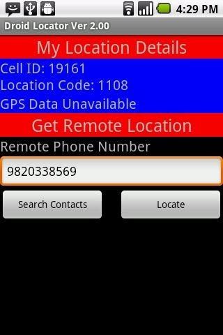 The simplest way to locate someone or get located Locate any device on google map in realtime, get your driving directions from your location to your friends location. WORKS WITH ALL GSM(Not Tested for CDMA) DEVICES (Android v.2.1 and up). IF YOU HAVE DIFFICULTIES SETTING IT UP, PLEASE MAIL ME… Droid Locator allows you to locate any Android device by simply simply selecting their number. If Droid Locator is not installed on the remote device, then an invitation will be sent to it automatically. Features: * You can force location updates remotely at any time without the user having to take any actions and it does not matter if the application is running or not * The ability to send a "SMS Ping", which will force an automatic location update of the remote device. * Even if the phone is rebooted, Droid Locator will automatically resume tracking and updating its position! * The ability to automatically send sms’s along with the location details of the phone when sim card changed or phone is stolen. * There are no limits to the number of users to track Droid Locator allows you to track you to know where your loved ones are with relation to you, and you can leverage all the google maps functionality like getting the driving direction, proximity to your location etc. You can now find out where they are, at anytime, as long as they have their Android phones with droid locator installed on it. You can also see yourself on the map and see nearby places and the proximity of the person you are trying to locate. Droid Locator also has the ability to send an SOS message along with its location details in case of the device getting stolen and sim card changed event. How to make Droid Locator Work: ->Install Droid Locator. ->To get a remote location update, Enter the remote devices number or select one from your contacts and then click on Locate. The remote location would show in a map if the remote device has droid locator installed, or an invitation will be sent out to the remote device. ->Generate your friend list by selecting Broadcast settings and entering or selecting contacts from your contact list, these will be the numbers used for your location broadcast or SOS in case of sim change or phne getting stolen. ->Sim Track Settings: Here enter the sms that should go out to all the people you added in your list of friends, in case the sim is changed in the phone.(The IMSI number will also be sent along with that text), so essentially you will have the new number, IMSI and your custom message sent out to your friends as an SOS. ->Display Location: This will show your current location on the map. ->Broadcast: This will broadcast your location to everyone in your friend list in the form of SMS. You can also Share your location info in facebook, twitter or other social sites, along with having an option of mailing it or sending it through bluetooth. Please note the following points: -> For using droid locator to locate remote devices, you need droid locator to be installed on both the devices. -> Droid Locator is an advertisement supported app, if you do want to remove the ads from the app please dont post unnessesary comments instead take some time and write in to me.