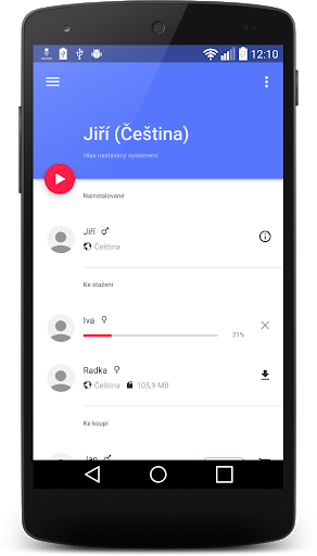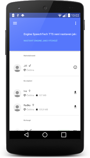 SpeechTech synthetic voices - the most natural-sounding voices for your phone and tablet. In total, there are 6 different Czech voices, 1 Slovak voice and a high-quality Russian voice is currently in preparation. The core of the system is SpeechTech's text-to-speech application, accompanied with the set of great synthetic voices - each available for a fee of approximately EUR 1,80, in the form of "in-app" payments.