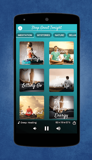 After installing this app for free, tap on its icon and get 1st category named Meditation which contains 6 different kinds of music having a mode of meditation feeling. Similarly, Mysteries contains fascinating sounds and category of Nature is based on the awe-inspiring sounds of the storm, forest, chirping birds and more. The last category of Relaxing has super calming tunes to soothe your mind and make it cozy for enjoying proper sleep. Moreover, this app has the auto replay feature to make you hassle free when want to listen to the track repeatedly. Categories with the numbers of tracks are as followed: