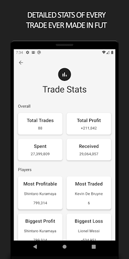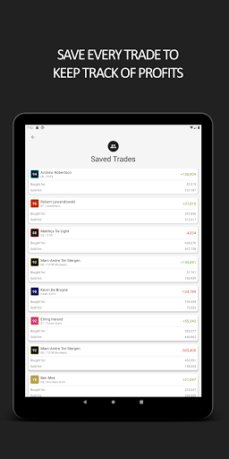 Wbudowany wbudowany baza danych handlowych. Teraz możesz zapisać wszystkie transakcje zespołu FUT Ultimate w jednym łatwym dostępu do lokalizacji, dzięki czemu można zobaczyć dokładnie, ile zysk dokonałeś na każdym przeniesieniu.