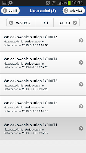 - wykonywanie zadań znajdujących się w skrzynce użytkownika – akceptowanie lub odrzucanie ich,